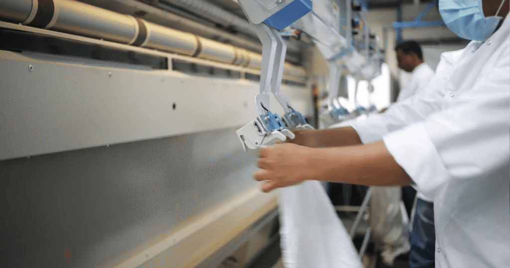 Collectés en fin d’usage, ces produits sont transformés en fibres recyclées, puis réintégrés dans la fabrication de nouvelles housses de protection écoconçues. Ces dernières remplacent les emballages plastiques traditionnels tout en assurant les mêmes fonctions de protection et de stockage. Ainsi, le cycle se referme, de la production textile à l’usage hôtelier, à la fin de vie au recyclage matière et à la nouvelle application textile.
