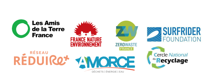 *Réseau Réduire+ (anciennement Compostplus), Amis de la Terre France, AMORCE, Cercle National du Recyclage, France Nature Environnement, Surfrider Foundation Europe, Zero Waste France.