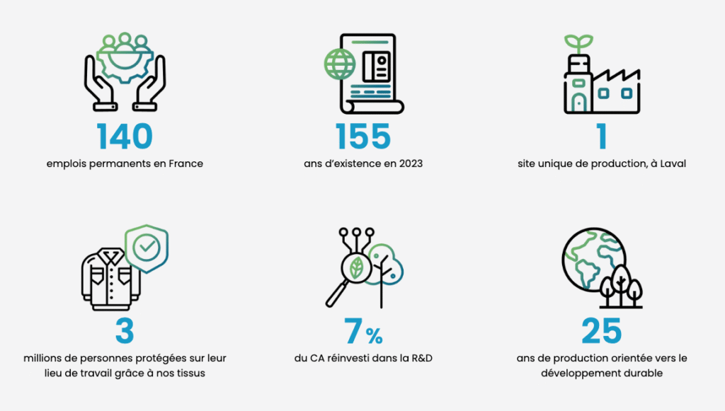 Acteur majeur du vêtement de travail et du vêtement de protection en France, TDV Industries est implantée à Laval, en Mayenne. La société dispose d’un site de production d’environ 24 000 m2 et a produit environ 4 millions de mètres de tissu au cours de l’exercice 2024 pour un chiffre d’affaires de 37M€. TDV Industries compte 120 salariés. L’offre de TDV Industries s’articule autour d’une large gamme de tissus techniques, chacune adaptée à des usages professionnels précis : ▪ Les vêtements de travail adressés aux professionnels du bâtiment, de l’artisanat ou de l’industrie ▪ Les vêtements de protection : chaleur, flammes, projections chimiques ou de métal en fusion, décharges électrostatiques… ▪ Les vêtements tactiques pour répondre aux secteurs de la défense, de la sécurité et des services publics ▪ Gamme de tissus Koncept pour répondre aux exigences du secteur du luxe pour lequel TDV Industries assure des missions de sous-traitance